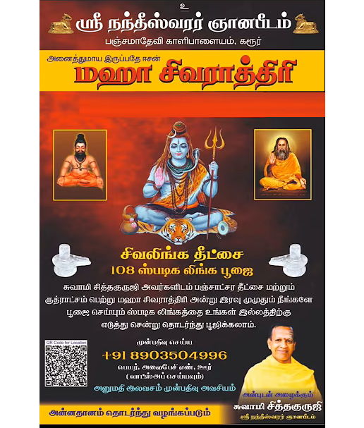 Reach out for blessings and wisdom from Sri Nandheeswarar Gnanapeedam in Karur.